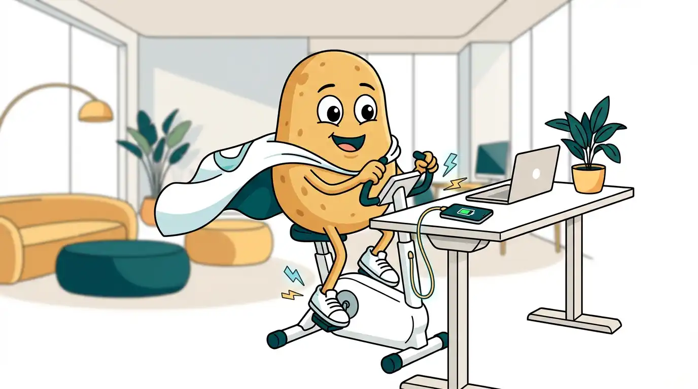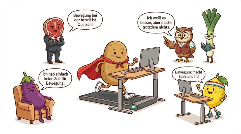 Max der Macher (ja, die Kartoffel) kennt das Dilemma: Er weiß, dass er sich mehr bewegen sollte. Er startet sogar motiviert – und endet trotzdem regelmäßig wieder als Couch Potato am Schreibtisch.